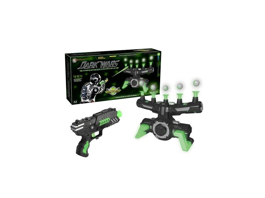Létající cíle se vznášejí díky proudění vzduchu, mají nastavitelnou foukací sílu, takže mohou plavat výš nebo níže. Souprava je fluorescenční, svítí ve tmě . Díky zvukovému efektu her je zábavnější. Puška a stojan na terč jsou ve stejném barevném stylu.<BR/>Terče a šípy jsou vyrobeny z měkkého materiálu, aby nedošlo k poškození při střelbě.<BR/>Můžete hrát jako tým ve dvojicích a stanovit pravidla, ve kterých vyhraje tým, který v nejkratším možném čase získá více bodů.<BR/><BR/>Obsah sady:<BR/>štít<BR/>pistole<BR/>12 pěnových šípů<BR/>10 polystyrenových kuliček<BR/>Technická data:<BR/><BR/>Napájení: baterie 4 x LR 14 (není součástí balení)<BR/>Rozměry pistole: 21,5 cm x 3 cm x 13,5 cm<BR/>Rozměry terče: 33 cm x 10 cm x 23 cm<BR/>Rozměry balení: cm x cm x cm<BR/>Materiál: plast<BR/><BR/>Dodatočné parametre
