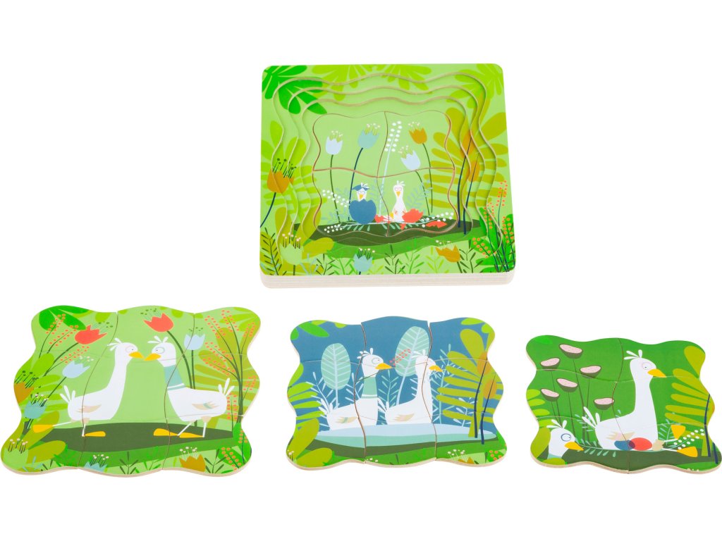 S tímto vrstveným puzzle se děti naučí o vývojí kachniček. Začnou s jednoduchými dílky první vrstvy a na každé další vrstvě si potrénují motoriku. Znalosti i motorika se budou stupňovat při každé nové vrstvě puzzle. Krásně ilustrované puzzle ukazuje, jak se do sebe zamilují kachní rodiče, jak připraví své vejce k vylíhnutí. Krásně detailní puzzle pro malé i velké. Hlavní vlastnosti: obsahuje 4 vrstvy - 28 dílkůprocvičuje motoriku a znalostiDodatočné parametre
