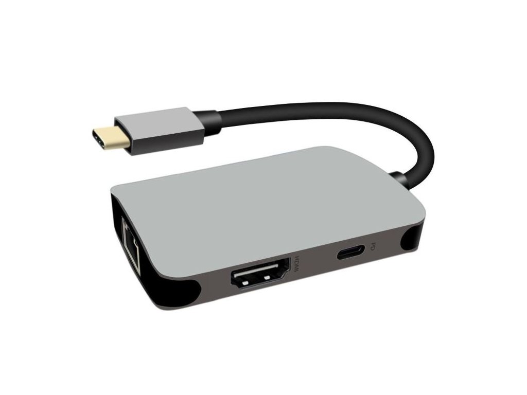Adaptér USB-C na HDMI + RJ45 + PD adaptér, hliníkové pouzdro