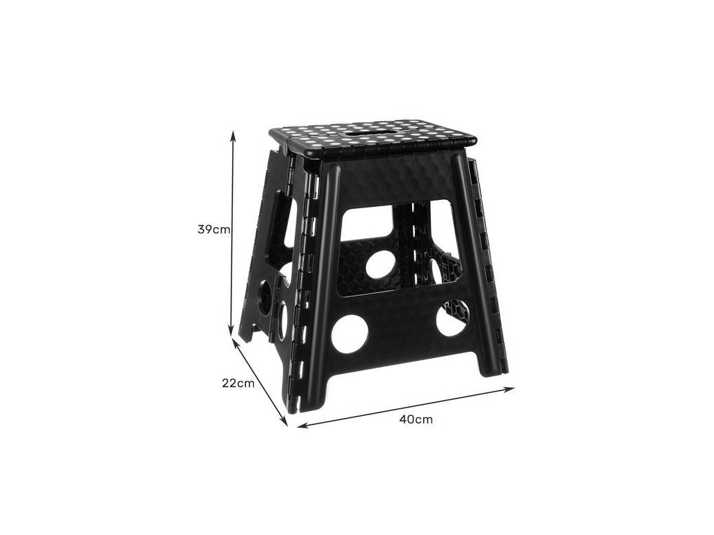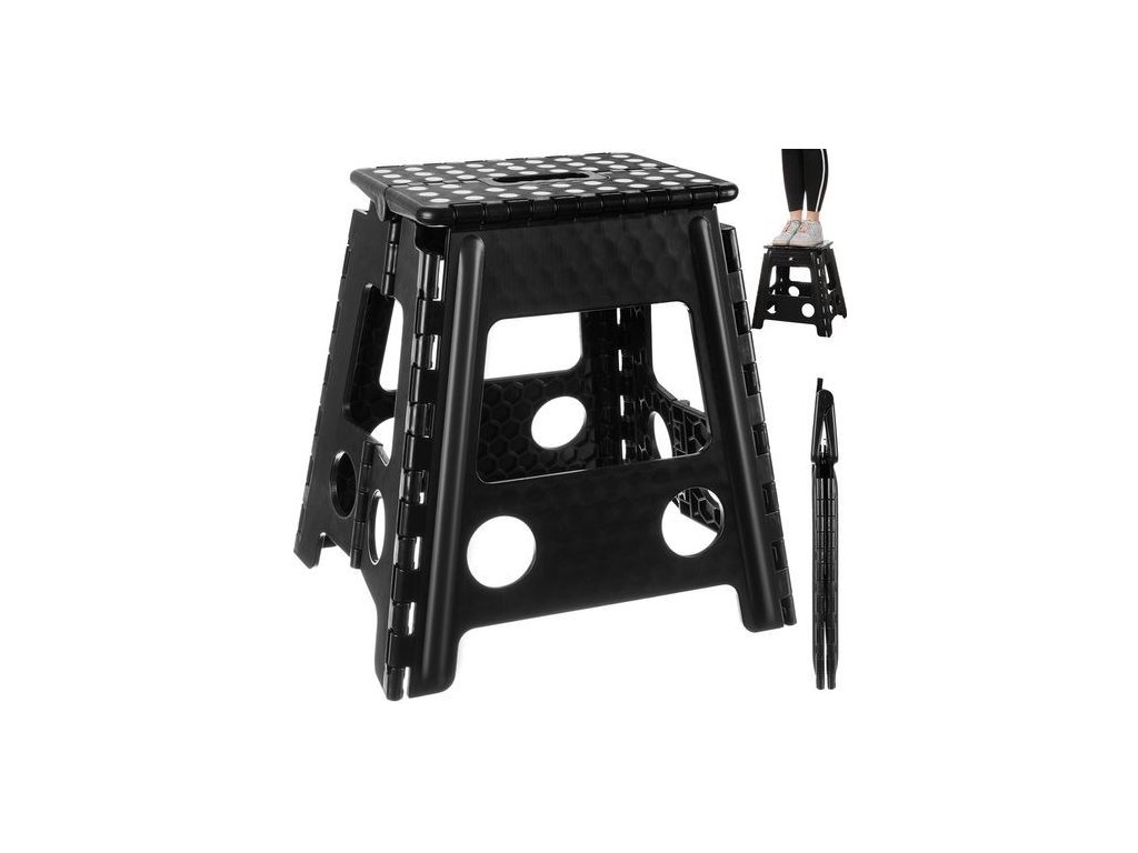 Plně skládací stolička, velmi snadná na přepravu a skladování. Výrobek je vybaven protiskluzovou vrstvou, díky kteréje použití bezpečnější. Plošinu využijete k dosažení vysoké police, natírání stropu při renovaci, zavěšení lustru nebo zavěšení závěsů. Výrobek je také perfektní jako platforma pro děti - například kdosažení umyvadla.