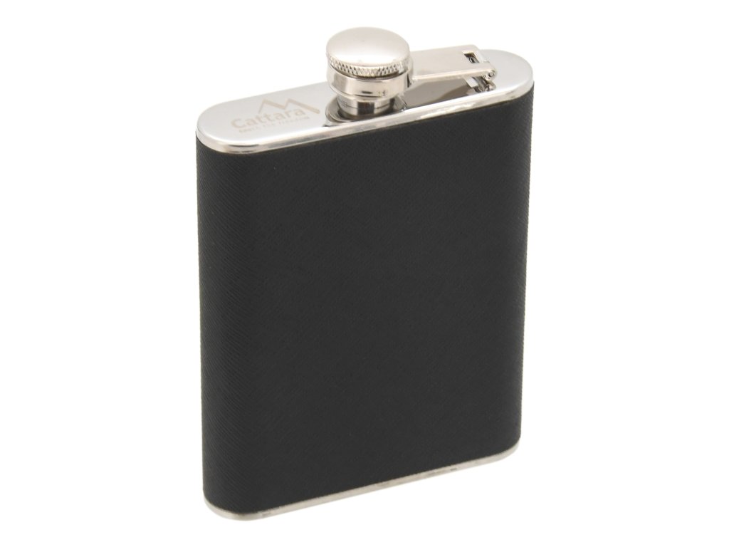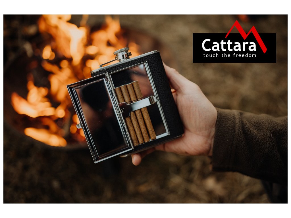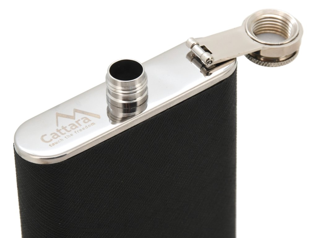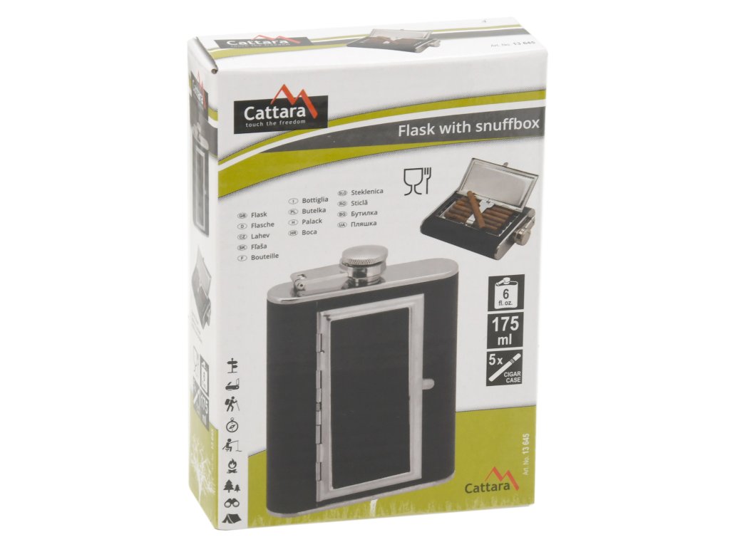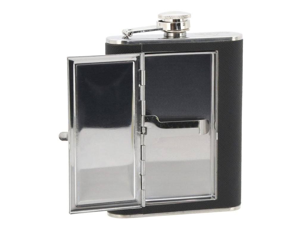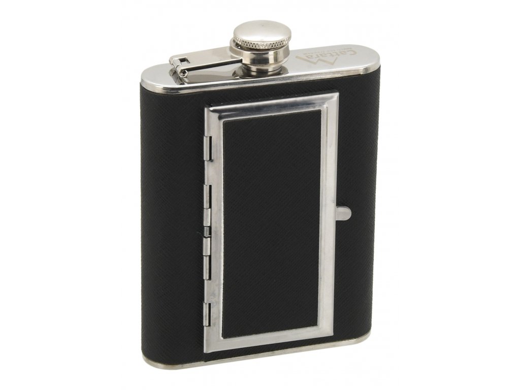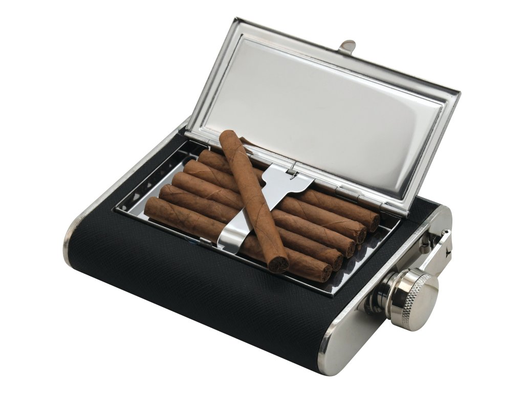 Placatka z nerezové oceli s potahem, s objemem 175 ml a pouzdrem na doutníčky.