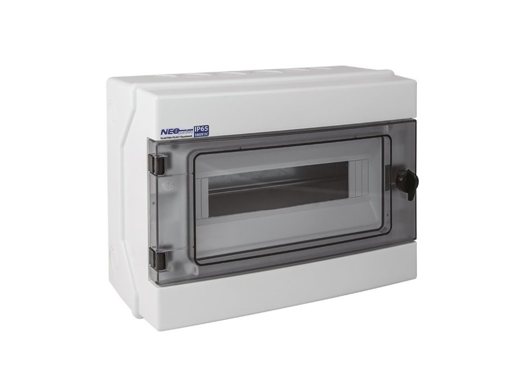 Rozvaděč RH-12 NEO pro fotovoltaiku plast. / IP65 / 1000V DC / 500V AC / 1x12 nástěnný / průhledné dveře