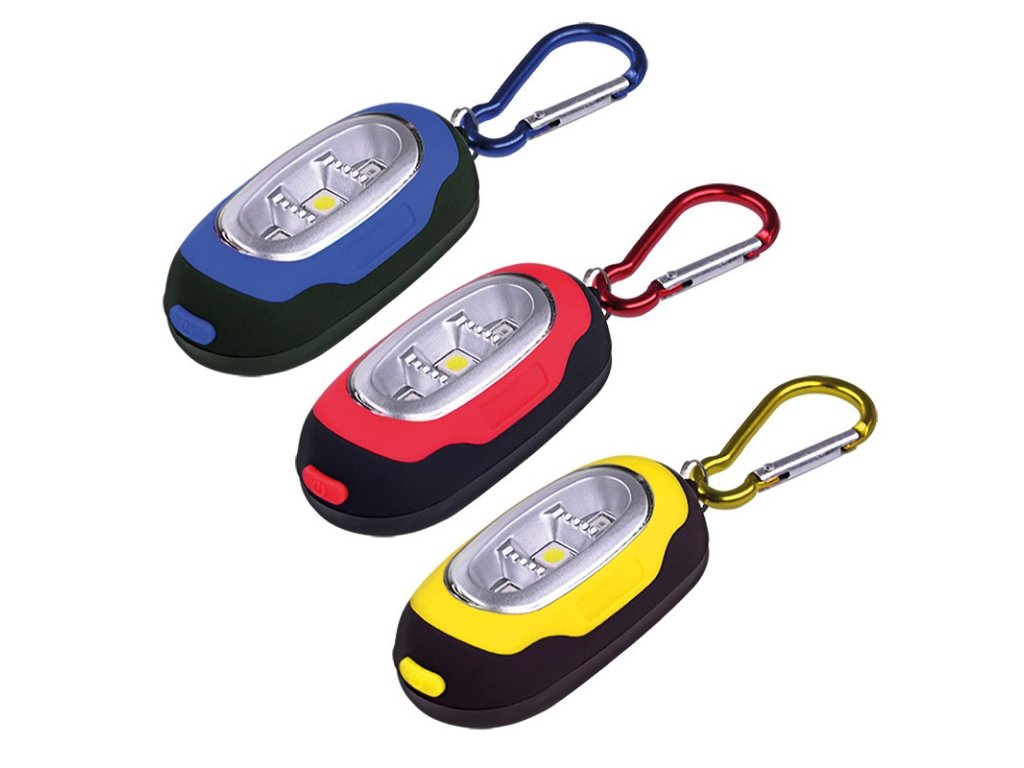 LED svítilna s karabinou. Vhodná jako klíčenka.