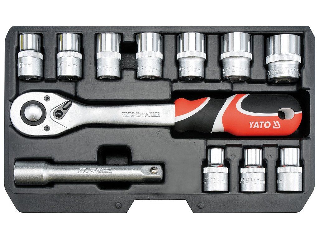 Gola sada 1/2" obsahuje 12ks: nástavců, prodlužovací nástavec a ráčnu s plastovou rukojetí. Vyrobené z kvalitní chromvanadiové oceli CrV6140 a CrV50BV30, S2 s funkcí AS-DRIVE.
