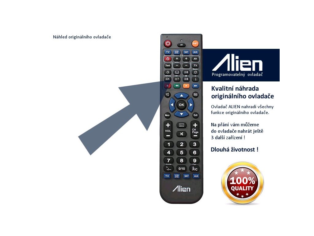 Dálkový ovladač pro TV Samsung AA59-10105F - kvalitní náhradní dálkový ovladač jiného vzhledu s podporou všech funkcí originálního ovladače. K ovládání je přiložený rozpis tlačítek. Ovladač je připraven k okamžitému použití, stačí vložit pouze baterie. Dodávaný ovladač ALIEN je plnohodnotnou náhradou originálního ovladače. Díky kvalitní konstrukci je zaručena dlouhá životnost ovladače. Vzhledem k tomu, že je ovladač programovatelný, tak ho můžete použít i při výměně vašeho přijímače za jiný - ovladač vám rádi přeprogramujeme na jiný model. Dálkový ovladač ALIEN 4v1 umí současně ovládat až 4 přístroje, pokud nám tedy spolu s objednávkou pošlete modely vašich zařízení, tak vám ho můžeme naprogramovat podle vašich potřeb. -------------------------- Prodáváme náhradní dálkové ovladače, originální dálkové ovladače, univerzální ovladače, dálkové ovládání...Diskusia