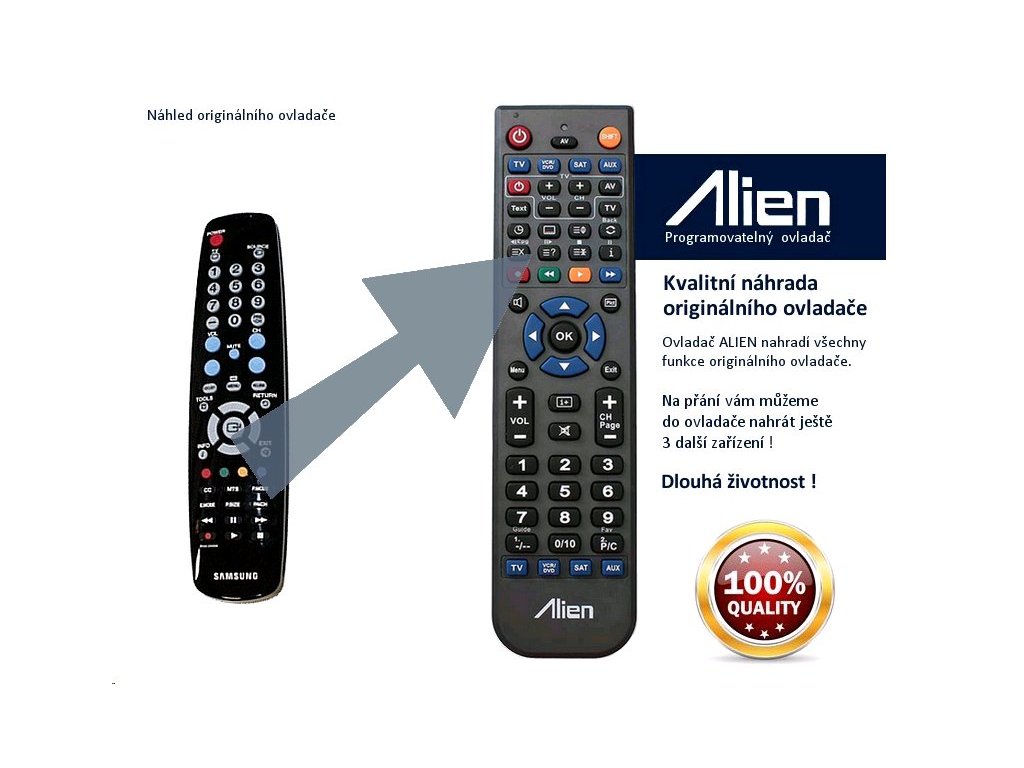 Ovladač obdržíte naprogramovaný na vaše zařízení. ALIEN nahrazuje všechny funkce originálního ovladače.