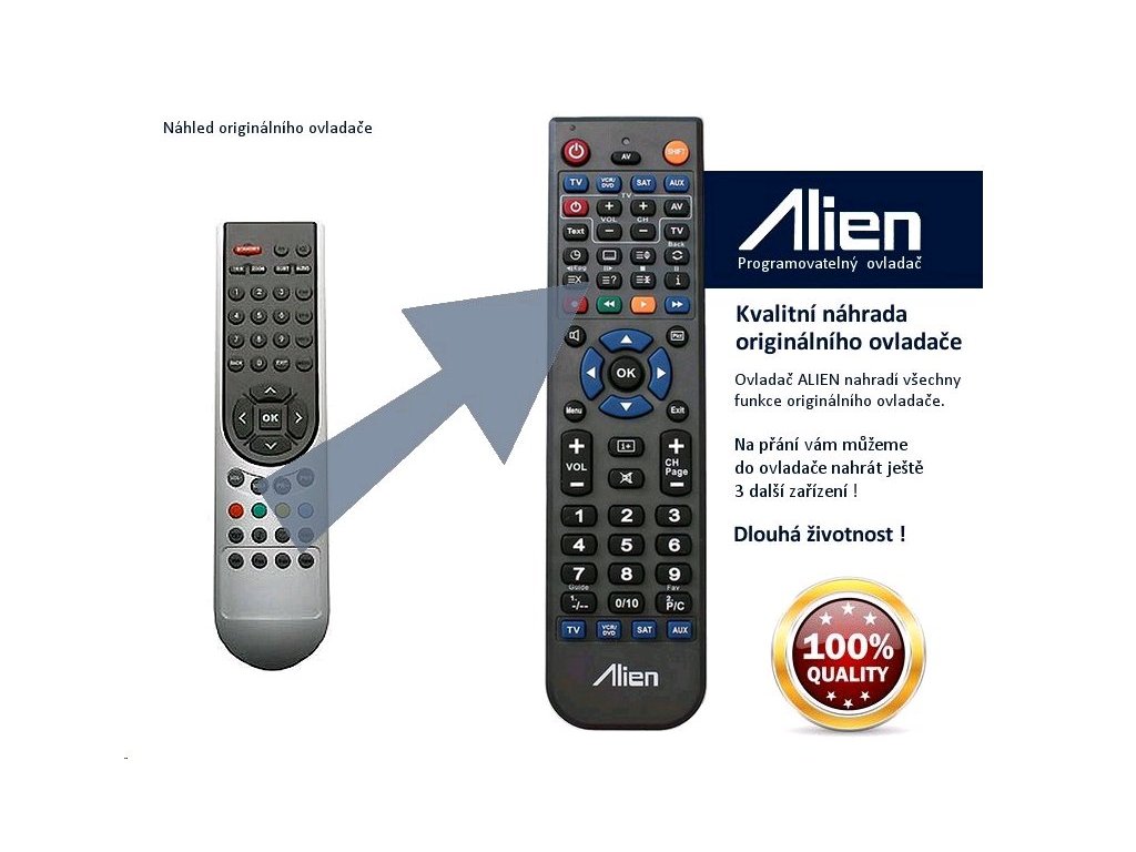 Ovladač je naprogramován na vašem zařízení. ALIEN nahrazuje všechny funkce originálního ovladače.