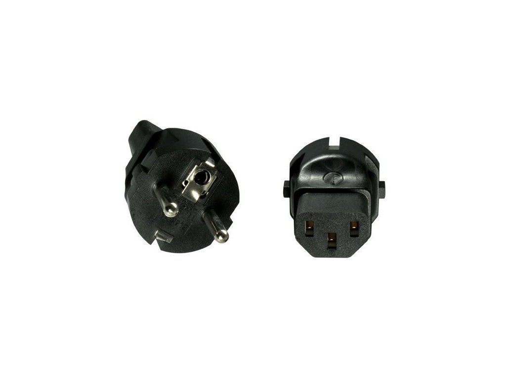 Napájecí adaptér v černém provedení, na vstupu konektor CEE 7/7 male a na výstupu IEC C13 female<BR/><BR/>- První konektor: CEE 7/7 rovná vidlice<BR/>- Druhý konektor: IEC C13 rovná zásuvka německého typu sochranými plíšky po stranách. Vhodné pro připojení visdlice, která je vybavena zemnícími plíšky po stranách<BR/>- Proudové zatížení: max 16A<BR/>- Napětí max.: 250V<BR/>- Barevné provedení: černé<BR/>- Baleno v PVC sáčku s EAN kódem<BR/>Dodatočné parametre