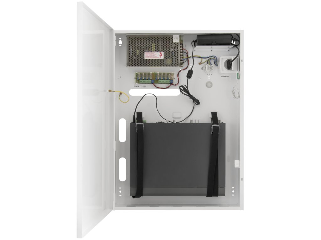 - Skříňka pro DVR / NVR s bezpečnostním napájecím zdrojem pro 8 kamer