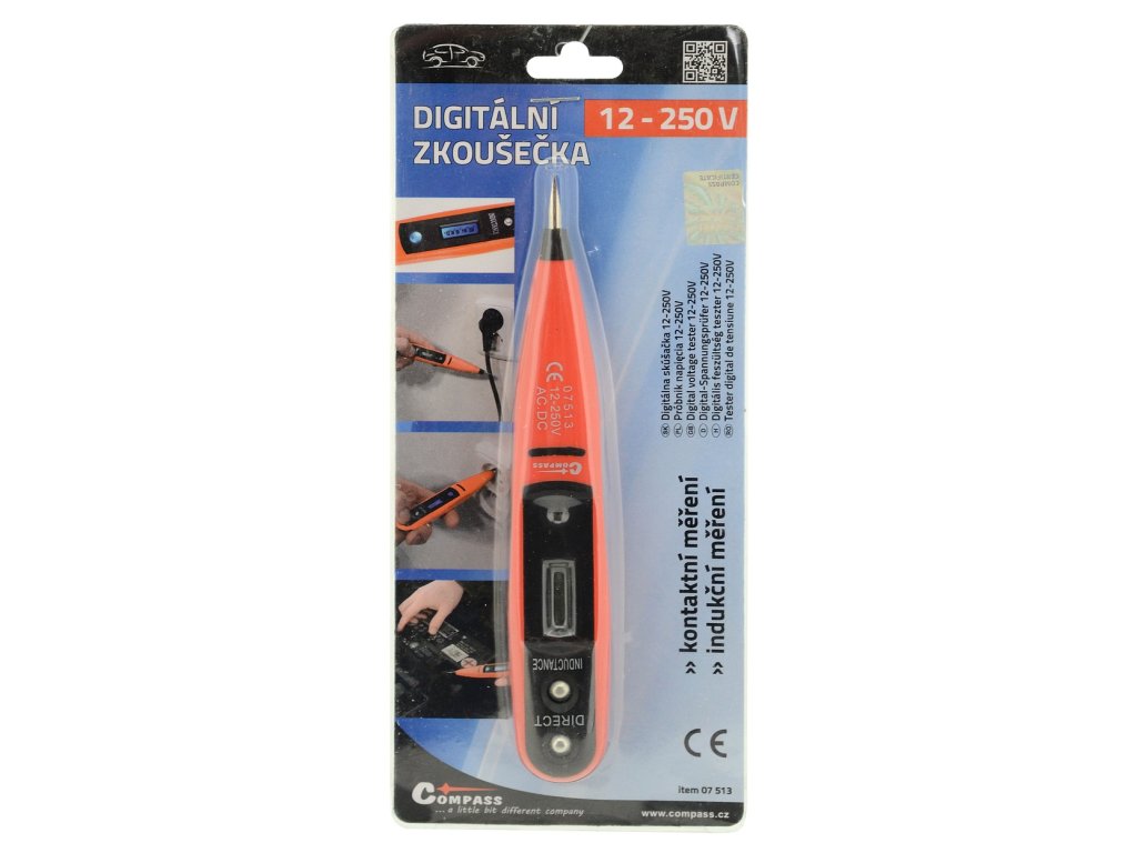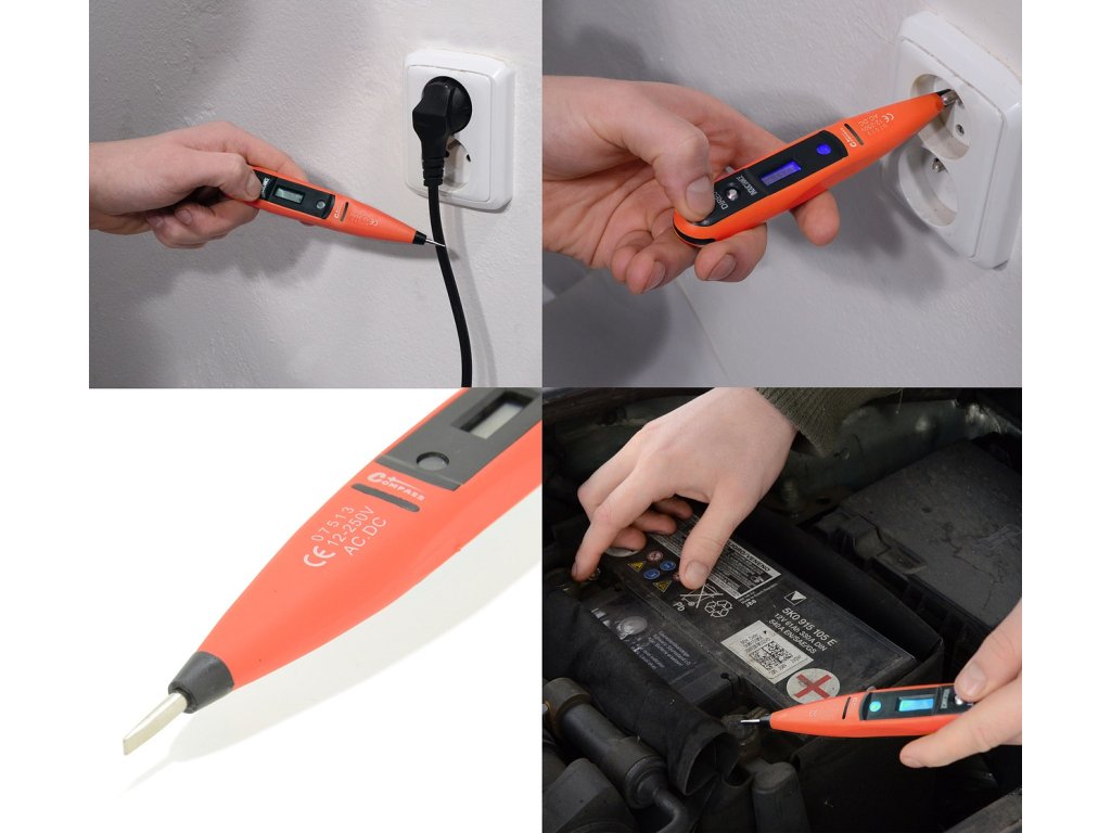 Rozsah měření v rozmezí od 12 V do 250 V. Přístroj je vybaven displejem pro zobrazení měřeného napětí.