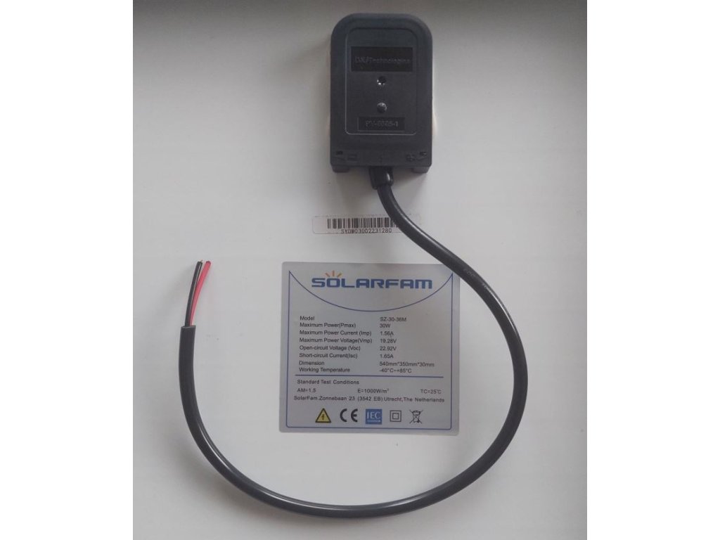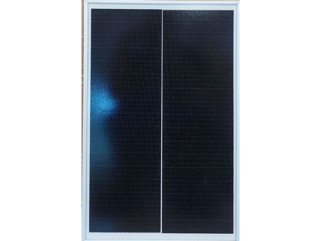Fotovoltaický panel vyrobený z monokrystalického křemíku. Duralový rám 30mm, krycí sklo.**Elektrické parametry:**