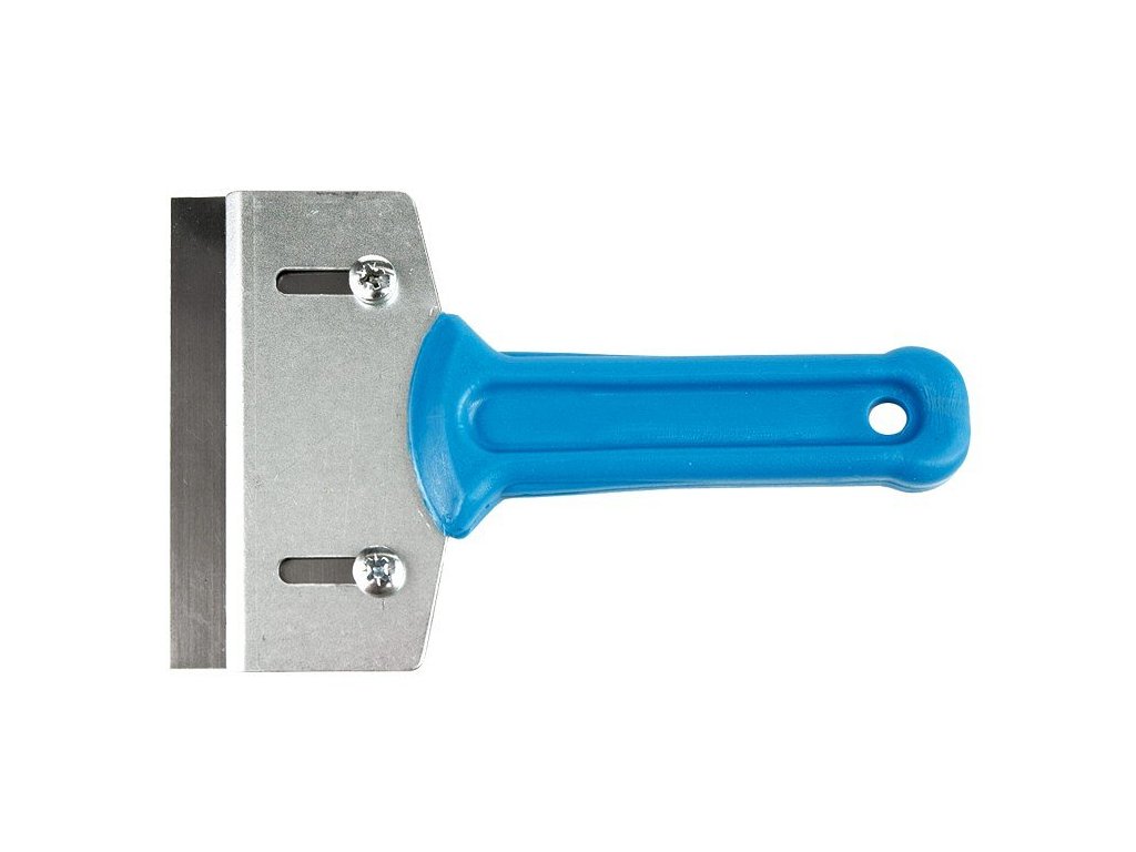 Malířská škrabka s výměnnou čepelí a pohodlnou plastovou rukojetí pro odstranění starých nátěrů a tapet.