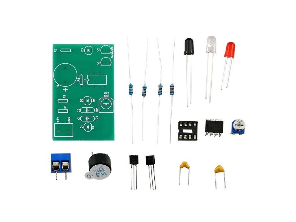 Stavebnice reflexního optočlenu pro detekci překážek s optickým a zvukovým alarmem. Nastavitelná citlivost.**Specifikace:**