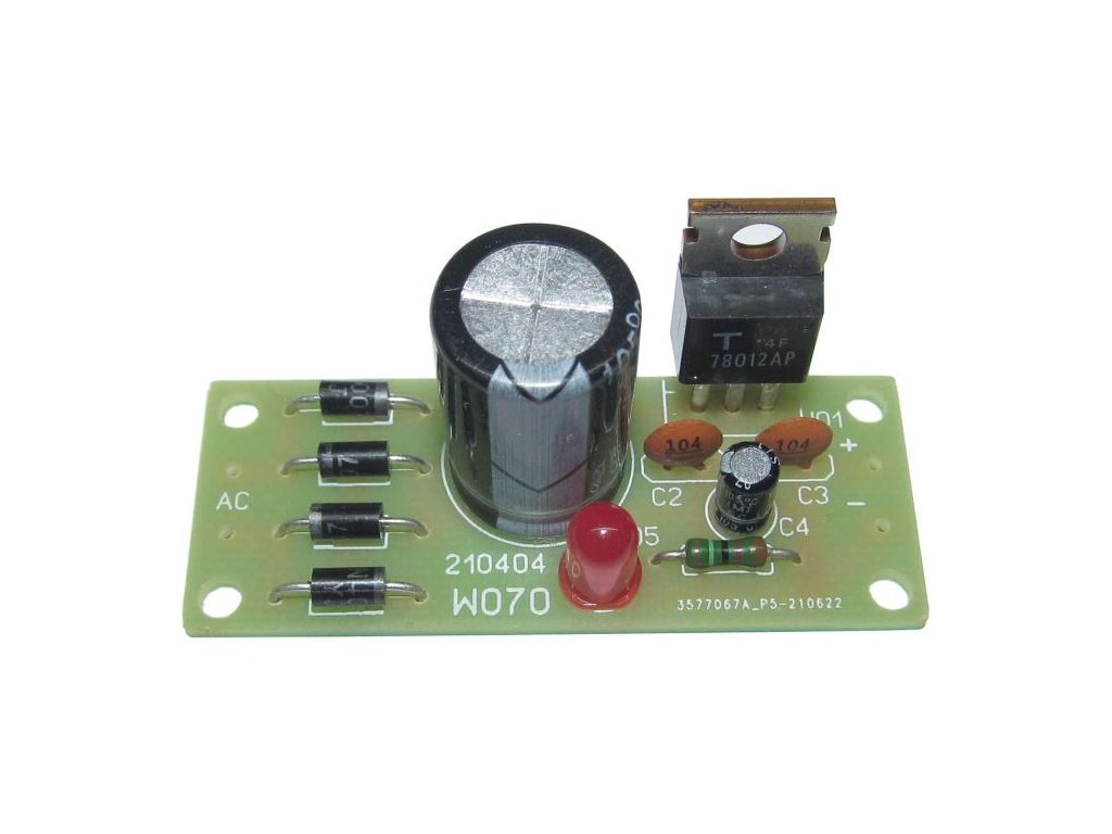 Filtrace 1000u/35V, stabilizátor 7806, použitelný chladič O770A. Možno propojit více stavebnic a dostanete univerzální vícenapěťový zdroj.Dodatočné parametre