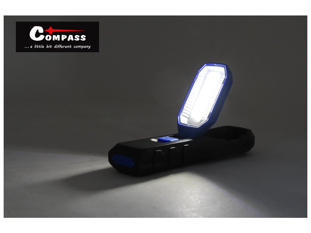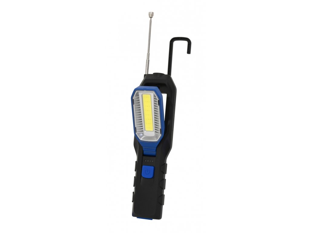 Dobíjecí montážní LED lampa, s funkcí Powerbanky. Nabízí čelní bodové osvětlení, boční rozptýlené COB osvětlení se dvěmi intenzitami, doplněné červeným SOS signálním osvětlením. COB panel lze vyklopit dle potřeby.