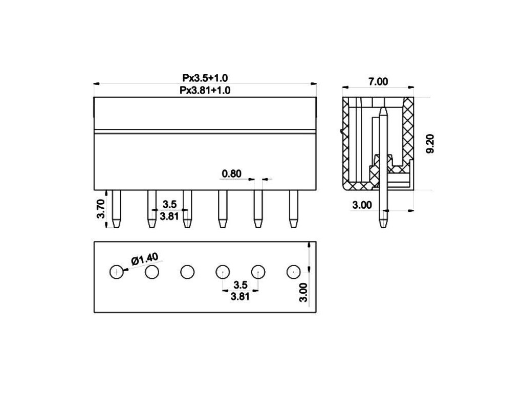 Svorkovnice násuvná 6P- část do DPS, KF2EDGV-6P, RM=3,81mm