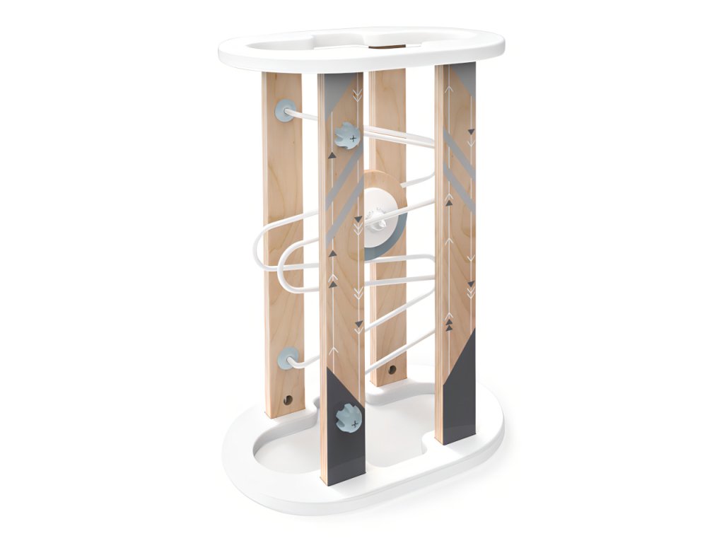 Otáčejte dráhou jako přesýpacími hodinami a zažijte nekonečnou jízdu! Nechejte děti objevovat fascinující práci magnetismu, která brání neposednému disku vypadnout! Konstrukce hračky využívá kovové a plastové spojovací prvky, jejichž pomocí lze dráhu v případě potřeby snadno sestavit i rozebrat a uklidit. Díky robustním základních dílům z odolné překližky je hračka pevná, stabilní a odolná. Svými skandinávskými a přírodními odstíny stylově doplní dětský pokoj. Dodáváno s detailním návodem k sestavení. Hlavní vlastnosti:dráha s kotoučemsnadné sestavení a rozebiratelnostrobustní a odolné dřevěné provedeníDodatočné parametre
