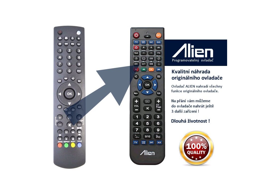 Ovladač je naprogramován na vašem zařízení. ALIEN nahrazuje všechny funkce originálního ovladače.