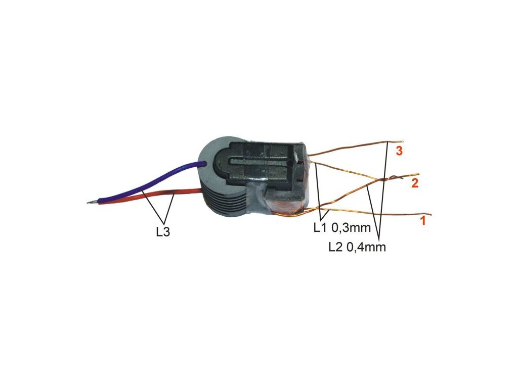 Tento transformátor je vhodný i pro napětí 12V DC, ale je nutné zvýšit základní zpětnovazební odpor na cca 150ohm~1,5Kohm.