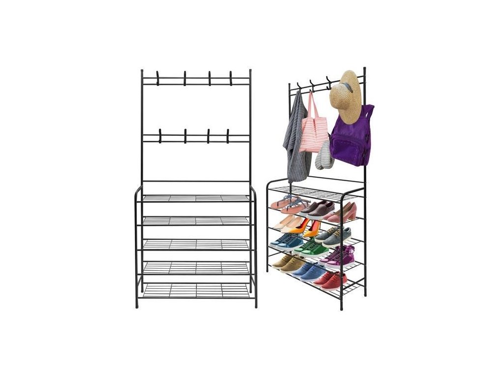 Věšák na oblečení s policemi na boty černý, Ruhhy
