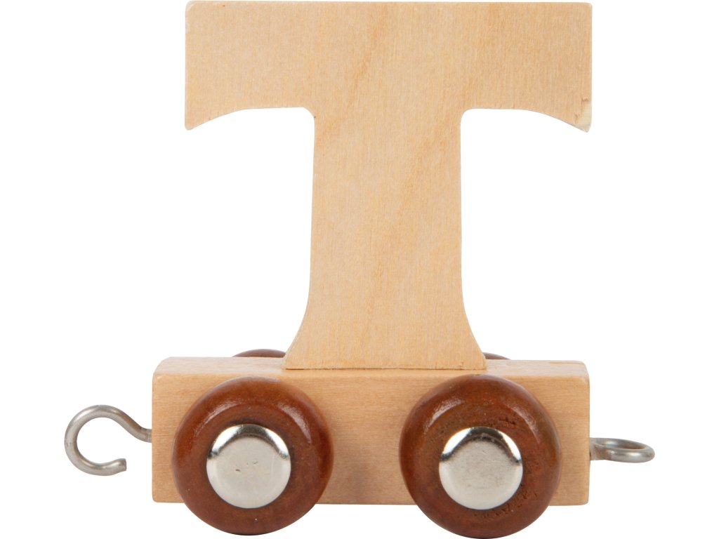 Dřevěný vláček vláčkodráhy abeceda písmeno T