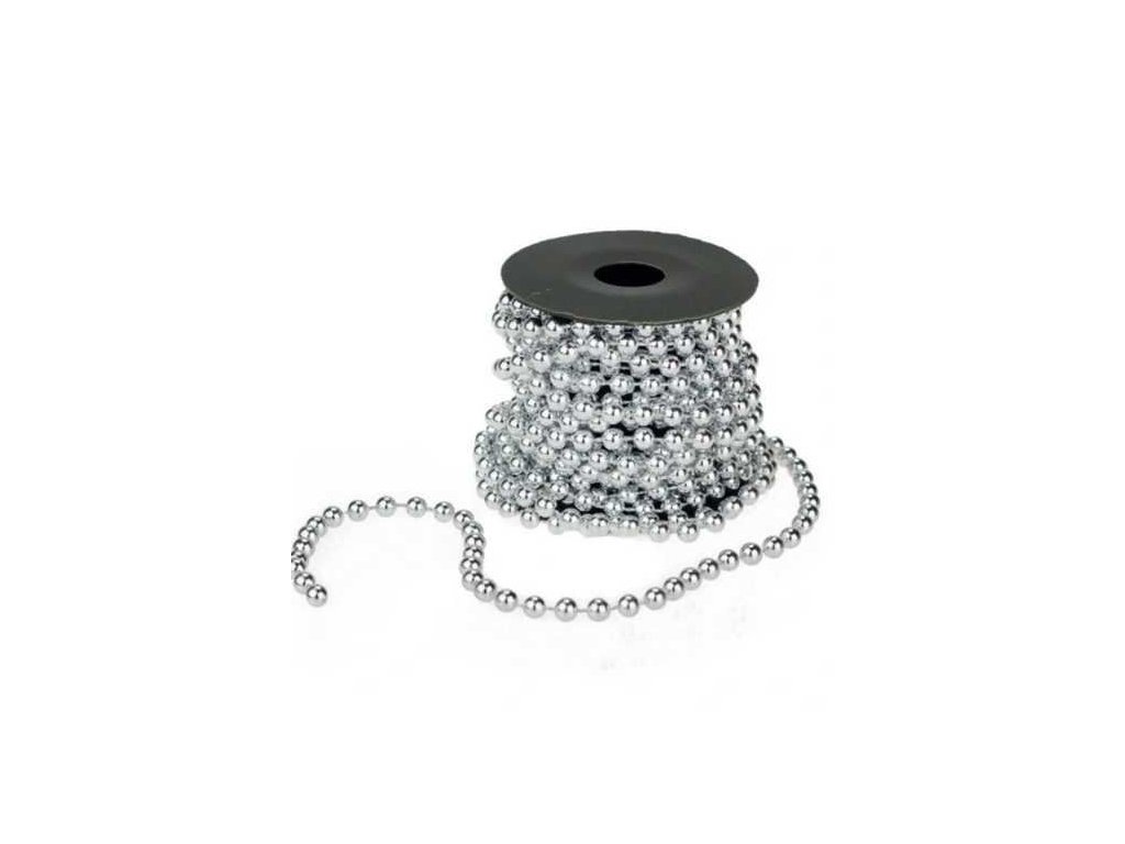 Korálky na vánoční stromeček na cívce 5m, stříbrný
