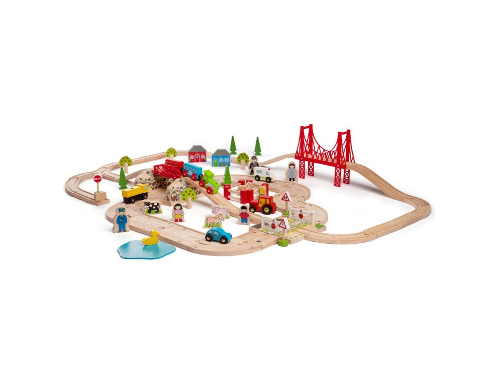 Bigjigs Rail Dřevěná vláčkodráha s venkovskou cestou 80 dílů