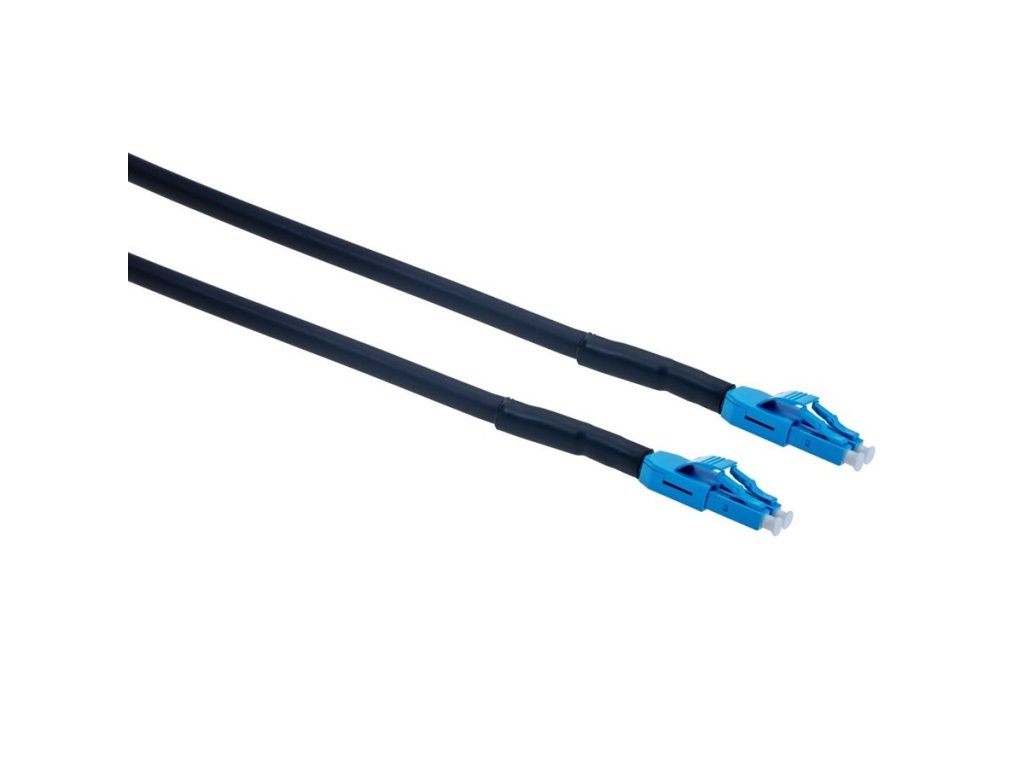 Masterlan optický venkovní patch cord vhodný pro venkovní instalace, například na propojení bezdrátového pojítka, které má optický port a datového rozvaděče. Plášť kabelu je vyroben z kvalitního UV stabilního PE materiálu. Uvnitř kabelu jsou dva aramidové tahové prvky spolu se dvěma SM vlákny. PE ochrana je dotažena až ke konektoru, kabel na koncích není flexibilní, není armovaný a není možné rozdělit koncovky. Použité jsou singlemode 9/125 vlákna typu G.657.A2 a jsou zakončeny dvěma LC konektory na obou stranách s UPC broušením. Délka celého kabelu je 15 m.Dodatočné parametre