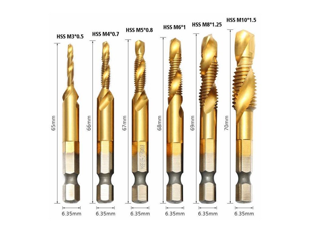 Vrtáky se závitníky M3,M4,M5,M6,M8,M10 - bity 1/4” HSS