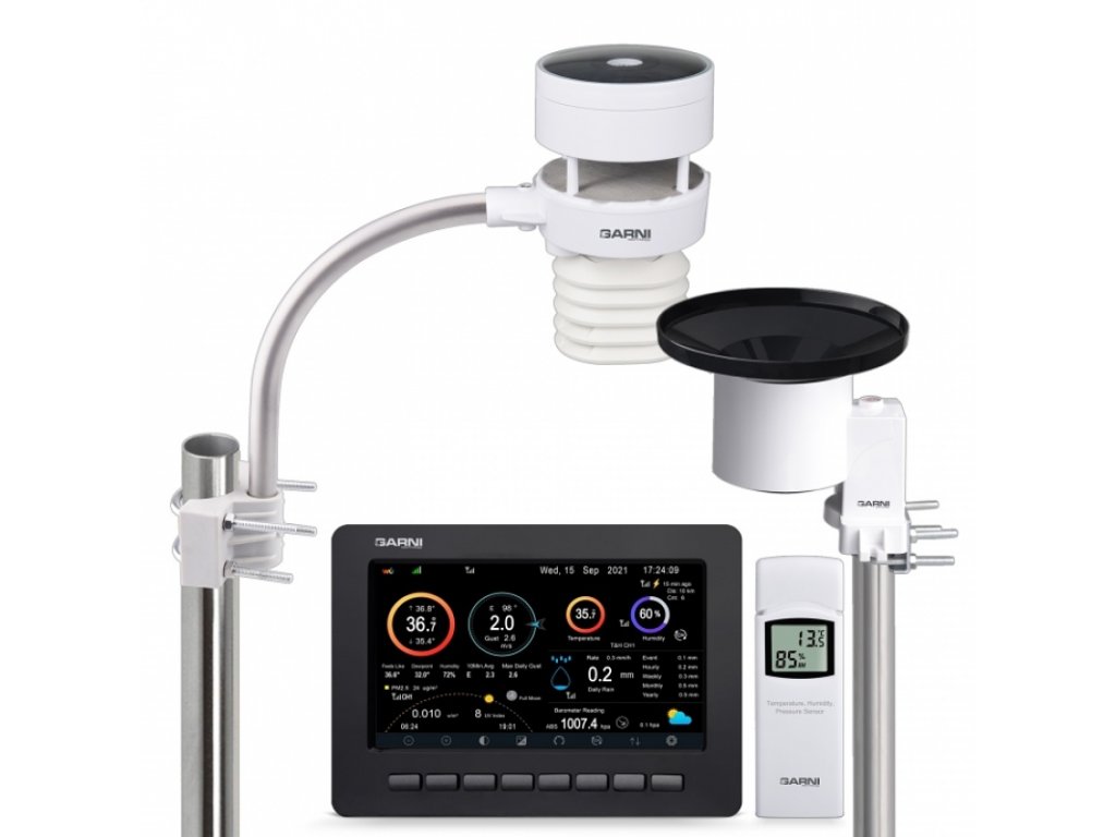 - možnost doplnění o volitelné příslušenství - 8 kanálové čidlo teploty a relativní vlhkosti GARNI 092H, venkovní čidlo PM2.5 pro měření kvality ovzduší GARNI 080Q, čidlo detekce blesků GARNI 094L a síťový adaptér pro vyhřívání anemometru GARNI AD1