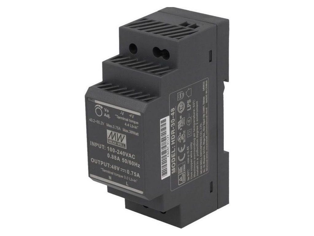 Zdroj Mean Well HDR-30-48, 48V=/36W spínaný na DIN lištu